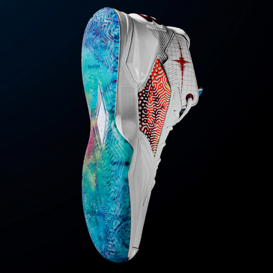 整体采用时下流行的中低帮造型示人,鞋侧类似指纹的复杂纹理,让人联想到伦纳德标志性的手掌元素。