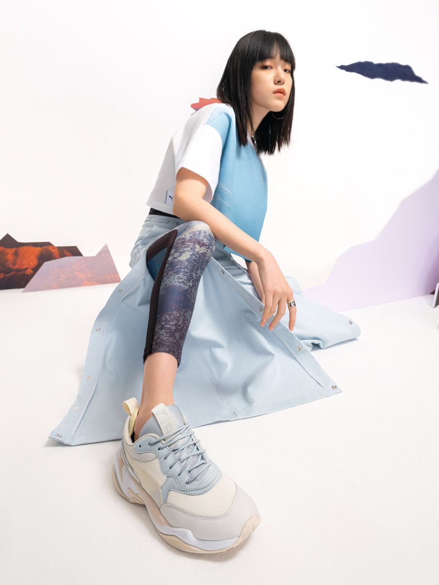 刘雯首次以客座设计师的身份,与品牌合作,全程参与 PUMA x LIUWEN 联名系列的设计及创意企划。