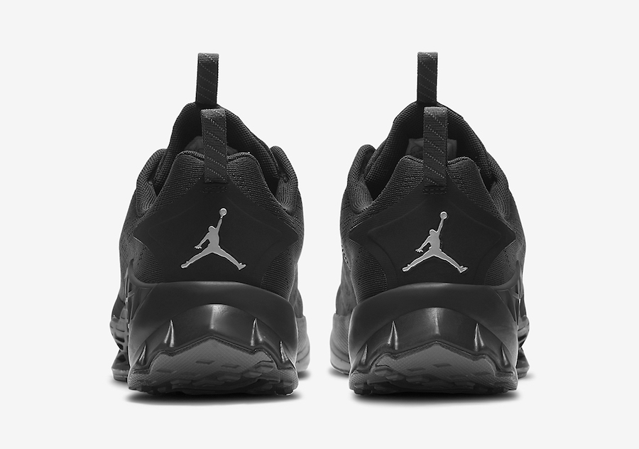 整体采用 Jordan Brand 标志性的黑猫配色呈现,棱角分明的造型远比传统跑鞋更犀利。