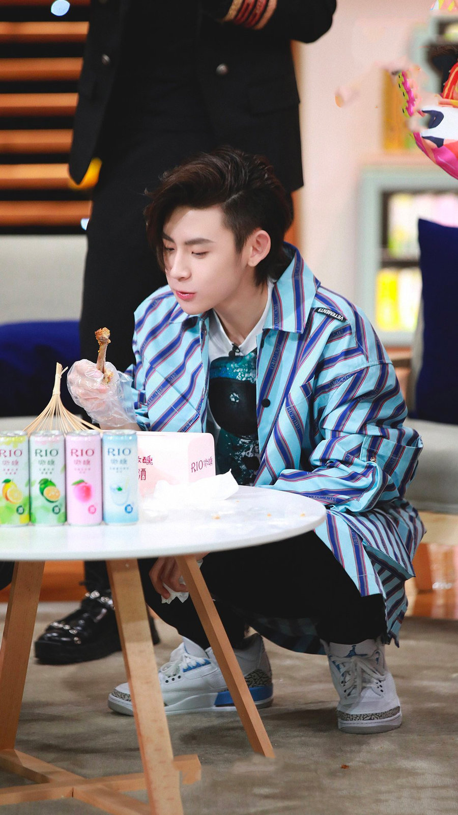 他上脚了一双近期刚刚发售的 Yeezy 500 High “Tyrian”,连三叶草官方都说这双鞋是 “夏日非常规操作”,户外鞋靴般的高帮设计,加上厚实的鞋面和丰满的填充,让这双鞋有着极好的 “保温效果”。