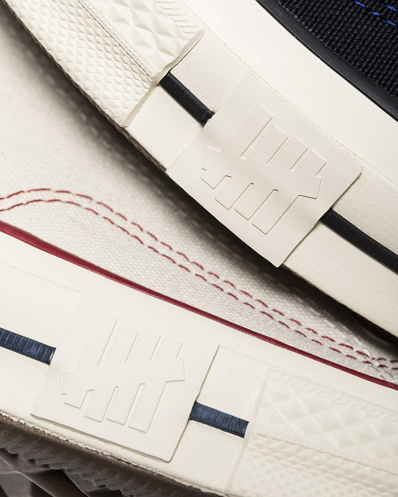 除采用高规格优质帆布打造外,最大亮点在于中底外侧压印标志性五栅栏 Logo,后跟部位注入 UNDEFEATED 刺绣字样。