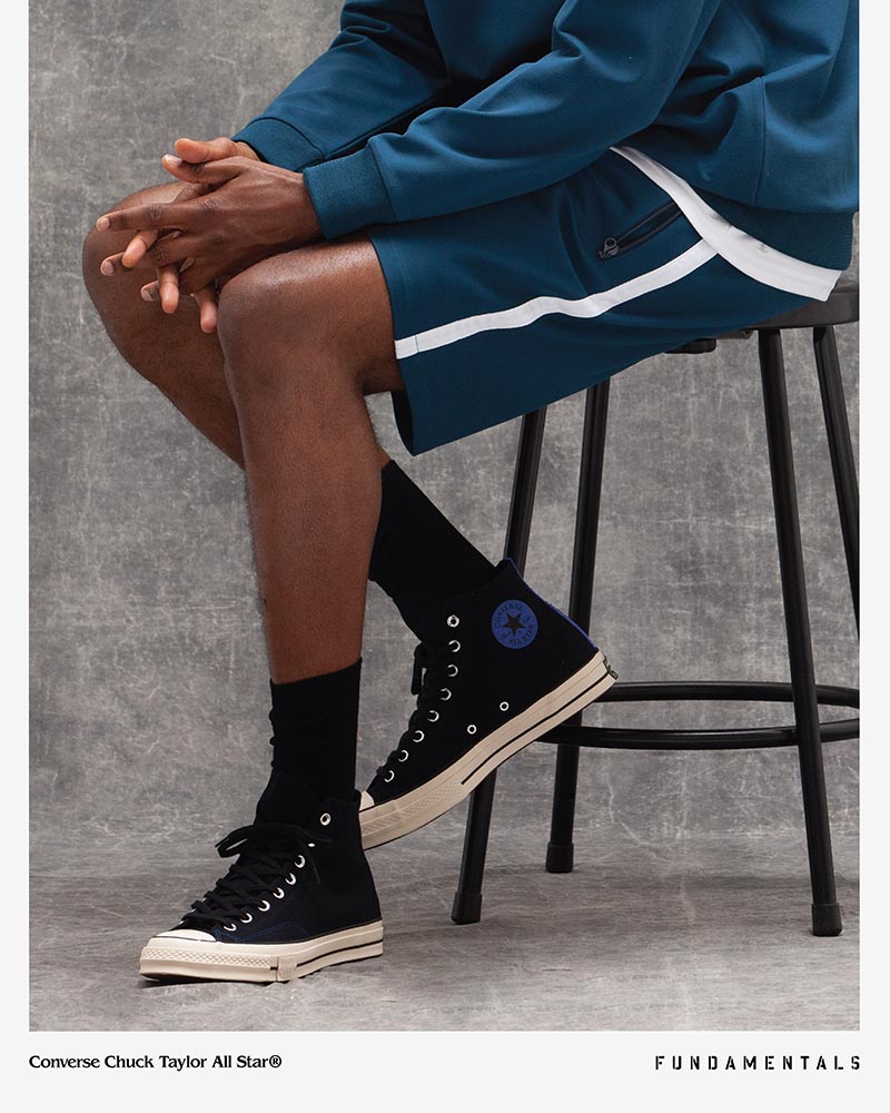 双方以备受街头潮人喜爱的 Chuck 70 为蓝本,辅以黑、蓝与米白的双色构建鞋身。