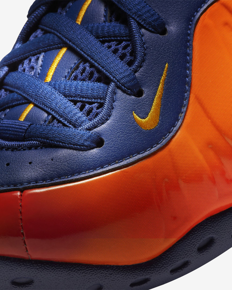 鞋舌以及鞋带采用深蓝色装扮,搭配橙色鞋面带来熟悉的纽约尼克斯队配色效果。