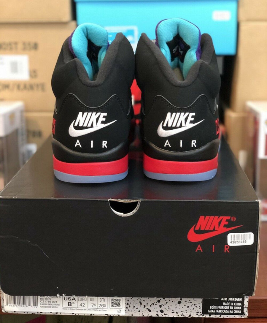 整双鞋的设计将 Air Jordan 5 中经典的「黑银」、「白红」和「葡萄」三大经典配色融为一体。