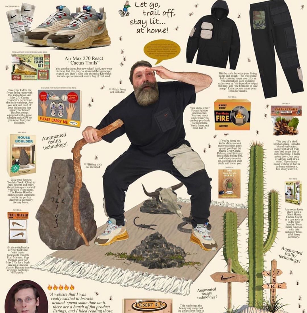 为了本次全球发售,Travis Scott 与 Nike 还特别架设一个专属网站 https://cactustrailstradingco.com 。不仅采用 Cactus Trails 沙漠风格的气氛营造,网站中更惊现特殊包装版本和户外主题的联名配件贩售。