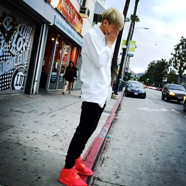 像市价近 10 万的鞋王 Air Yeezy 2 “Red October”,一度是他的出门逛街标配。