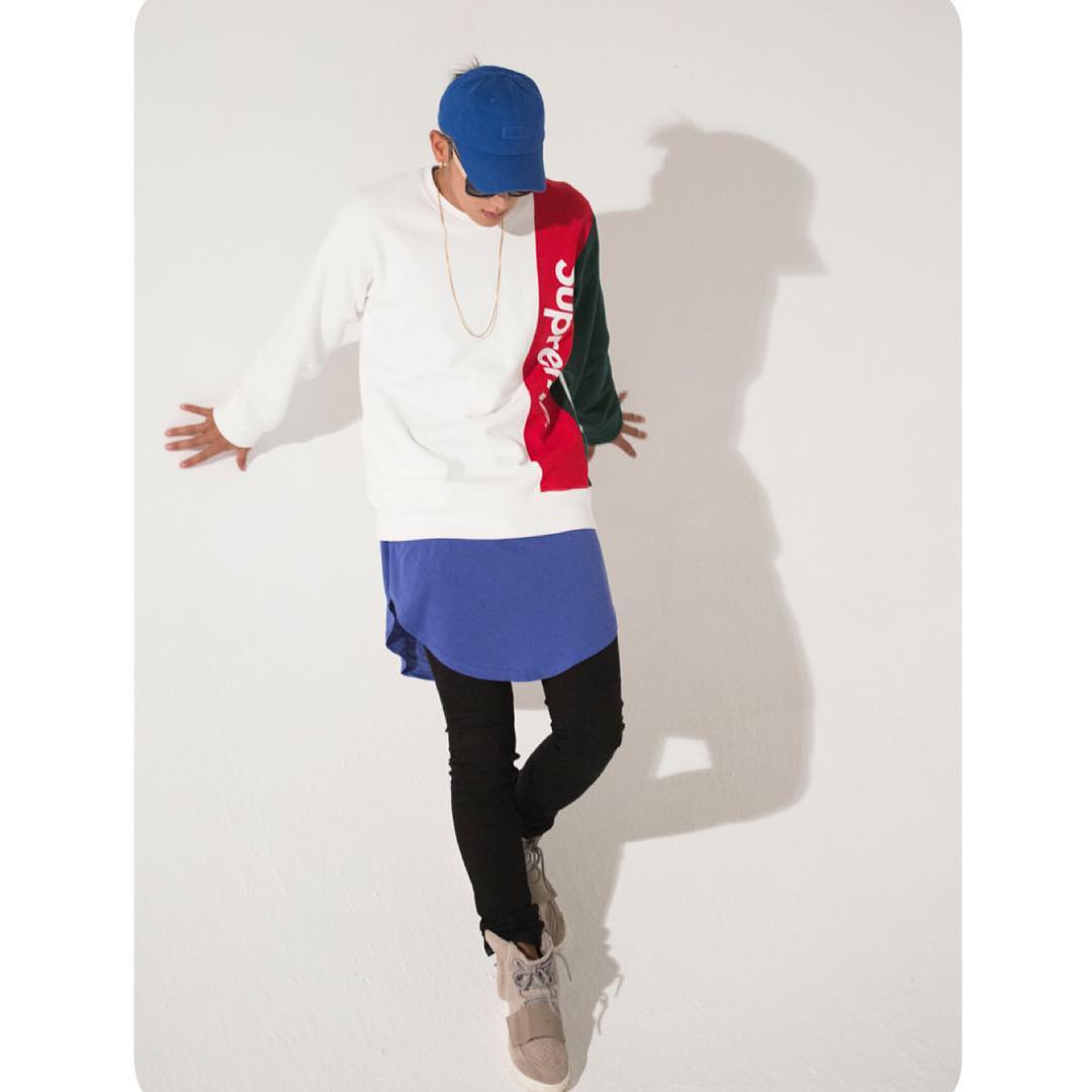Yeezy Boost 750 OG 搭配 Superme 拼接卫衣,足以证明他也曾是美街潮流的弄潮儿!
