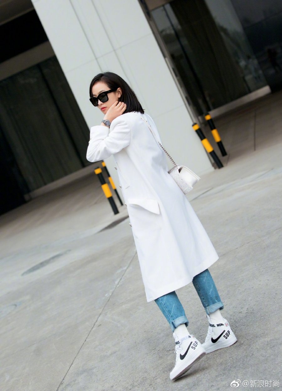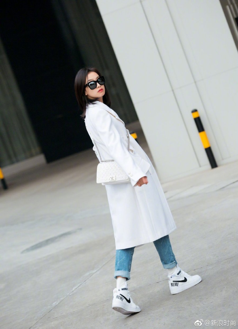 在节目中选以非常干净 Vans 小白鞋搭配,脱离了热门联名款,依旧是潮流圈最值得借鉴的明星穿搭范本。