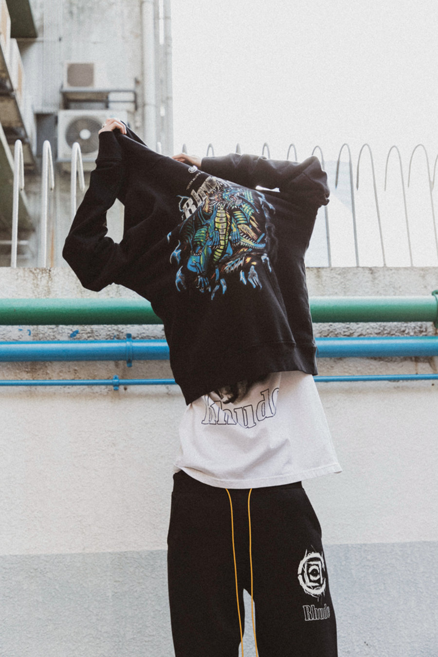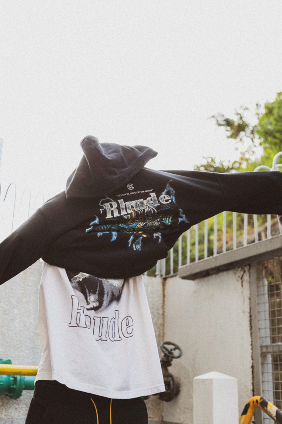 CLOT 创意总监陈冠希和潘世亨一直以来都与 Rhude 主理人 Rhuigi Villaseñor 保持着密切的联系,同时 Rhuigi 更是坦言陈冠希帮助、启发了他许多。
