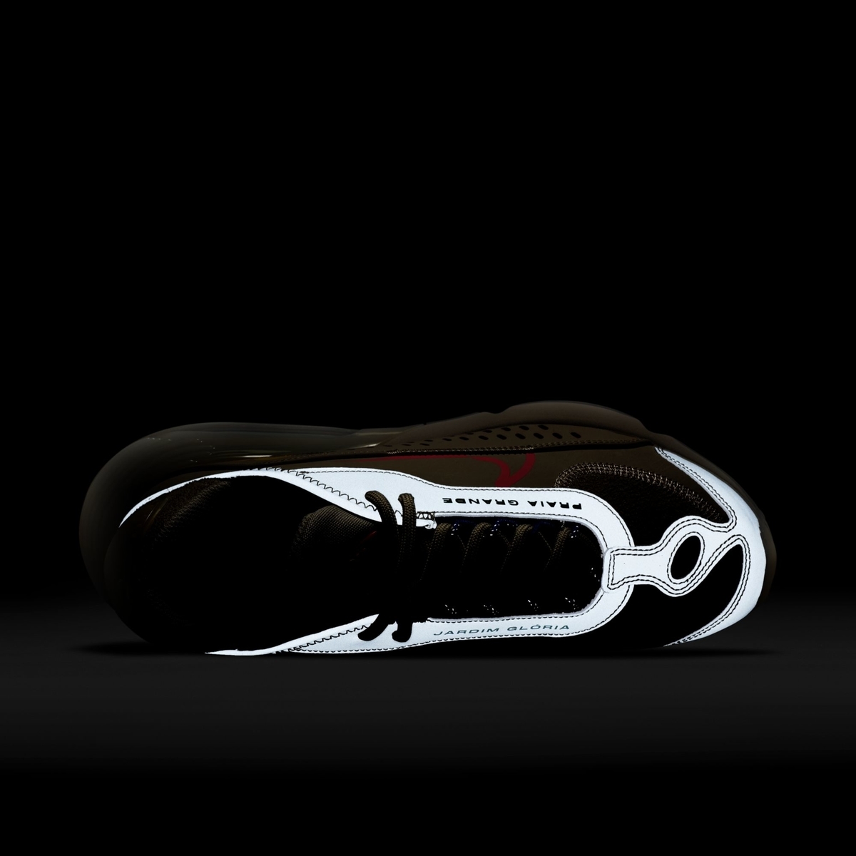 鞋带两边还带有文字标签装饰,表面之下还暗藏 3M 反光效果,整体样式非常独特。