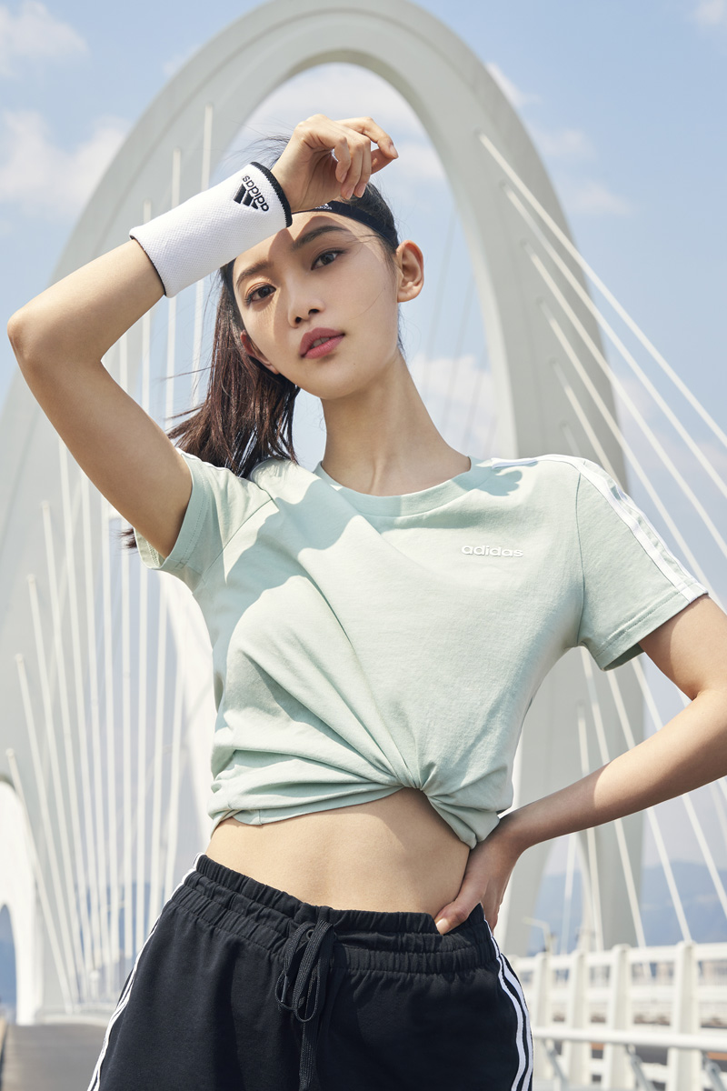 该系列的女款短袖同样展现了专属于夏日的清新气息,肩部点缀三道杠经典百搭元素,清爽色彩登场夏日,张扬年轻动力。