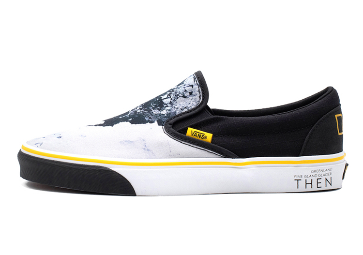 每款鞋的鞋面融入《国家地理》杂志封面以及 Logo 等元素,展现出十足的联名气质。