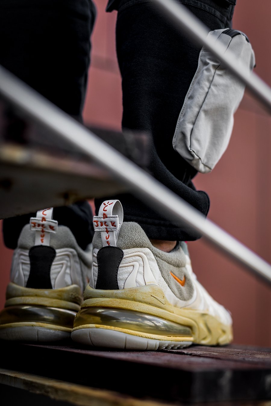 上脚颜值方面,辨识度很高,一眼就能看出是 Travis Scott 的鲜明个人风格。