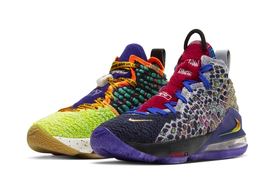 詹姆斯的 LeBron 系列球鞋,总有推出 “What The” 配色的传统,融合多款配色精华,带来让人眼花缭乱的新造型。