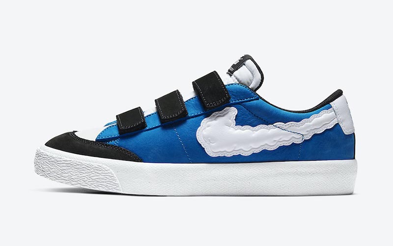 其中代表天堂的 Nike SB Blazer Low 通过鞋面生动立体的蓝天、白云,营造我们熟悉清澈感觉。
