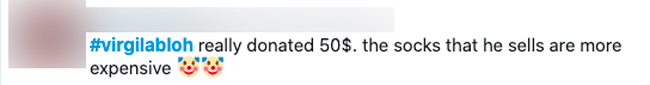 “Virgil Abloh 真的捐了 50 美金。他卖的袜子都比这贵。”