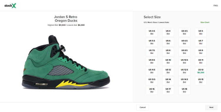 作为当年的天价俄勒冈鸭队专属 PE 配色,目前市面上已经极为稀有,早已成为球鞋收藏家最为抢手的一款球鞋之一,仅有的价格也是高达 $6300 美元。