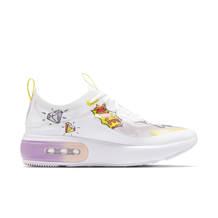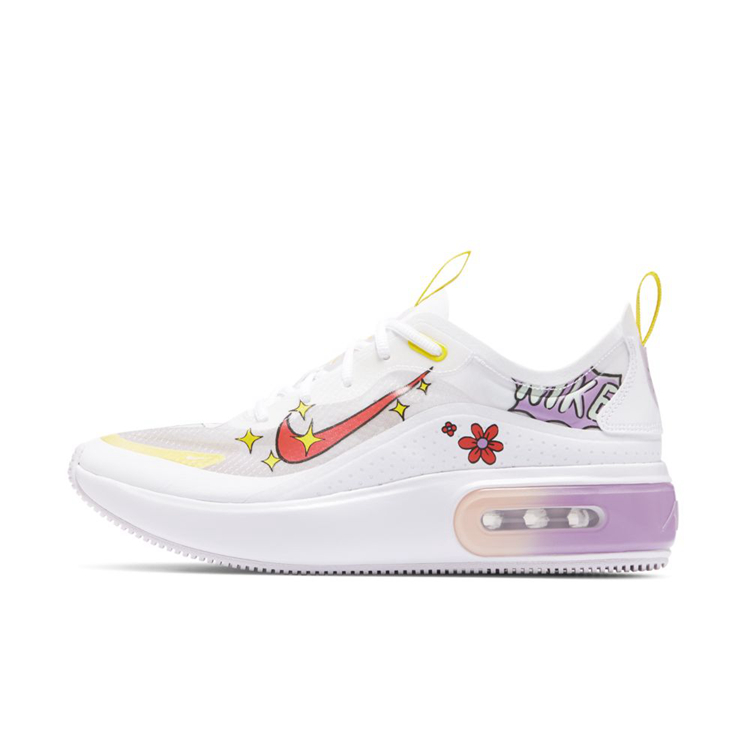 鞋身中部也以相同手法绘制 Swoosh Logo,同时带有星星图案以及花朵点缀。要知道在此前发售的 Air Max Dia 鞋款中,多数侧身是没有 Swoosh Logo 的。
