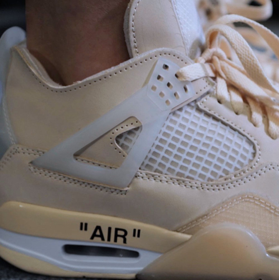 作为此次 OFF-WHITE x Air Jordan 4 的配色之一,整双鞋采用一袭米白色打造,高品质麂皮材质鞋身看起来质感相当柔软。