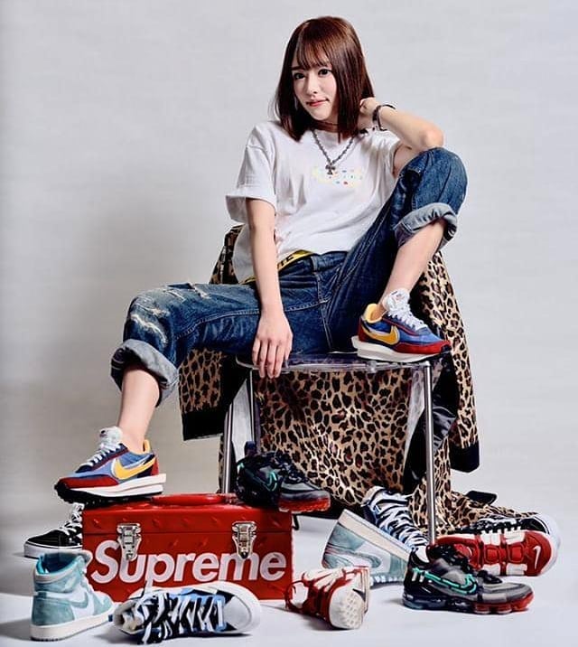 最有名的一张照片应该就是穿着粉丝绸 CLOT x Nike Air Force 1 这张,让人开始注意到她平时生活中竟然穿过那么多球鞋,而且还都是狠货!