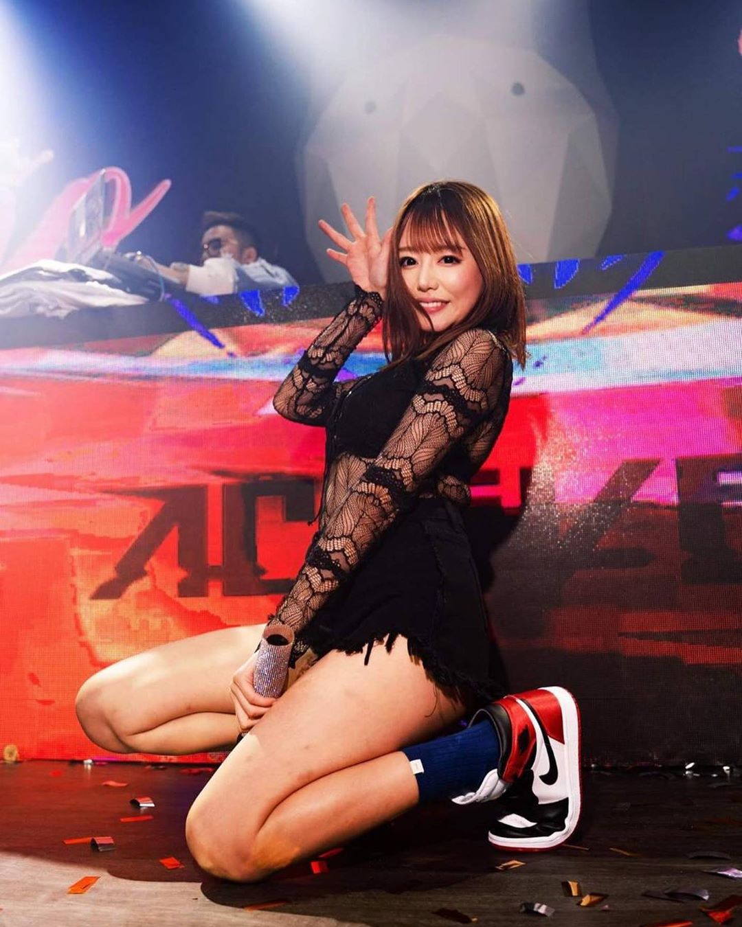 浜崎真緒 a.k.a DJ Mao,不仅跟 DJ SODA 一样会打碟,而且也爱穿球鞋,要论多才多艺甚至还更胜一筹,毕竟还有点演技。