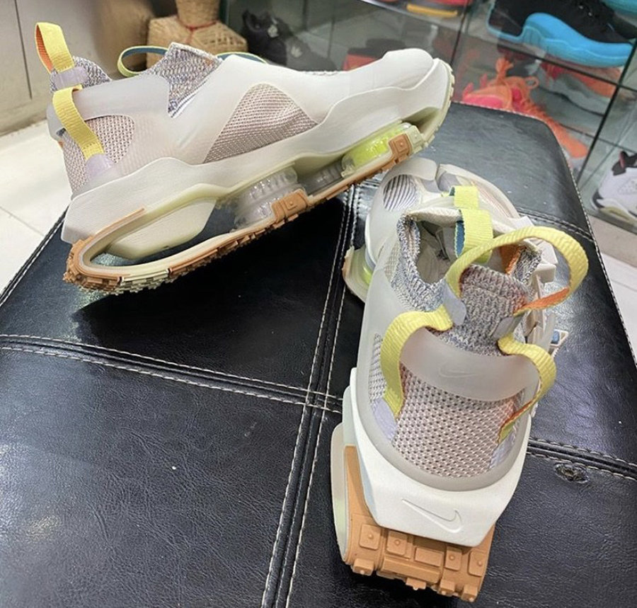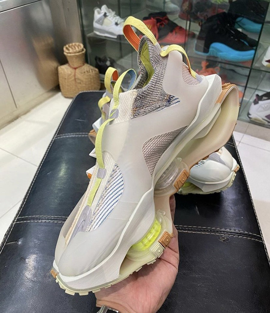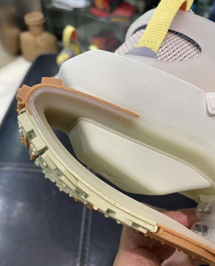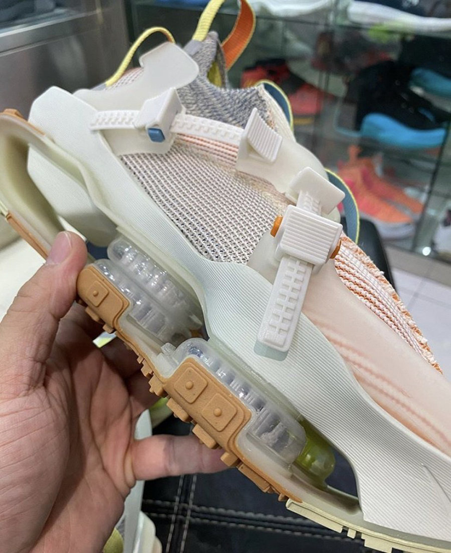 前掌为 Alphafly Next% 同款的左右两块 Zoom 气垫,而中足还有双层叠放的两块 Zoom 气垫,一只鞋就有四块气垫,这样的恐怖配置真是前所未见。