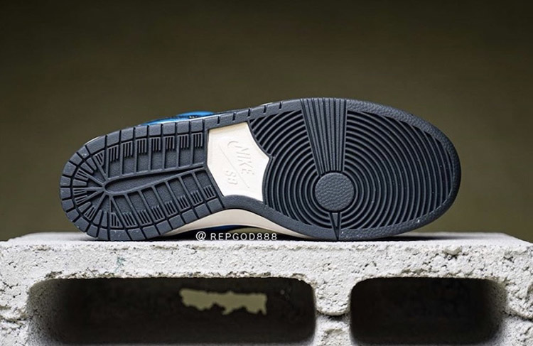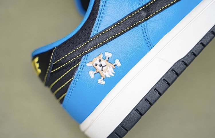 整双鞋采用白蓝撞色拼接打造鞋身,皮革材质呈现出 Dunk SB 系列鞋款一贯的鞋身质感。