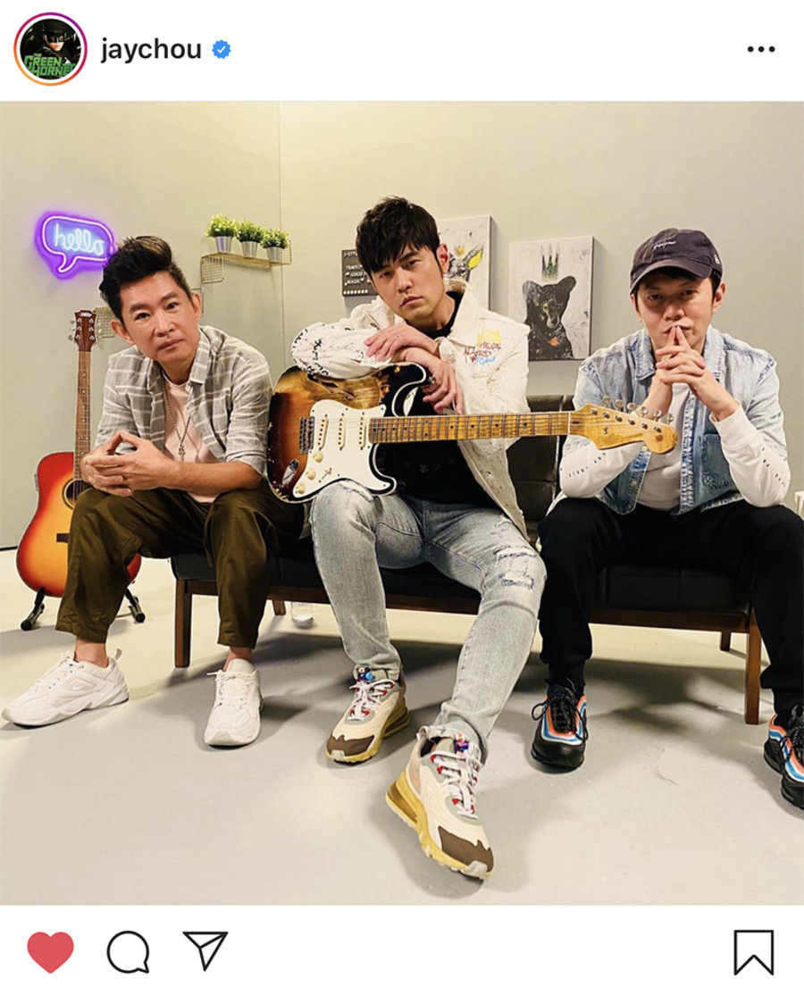 周董与五月天再度合体,合照中上脚 OG 配色黑水泥 Air Jordan 3,一看就是老 Sneaker 了。