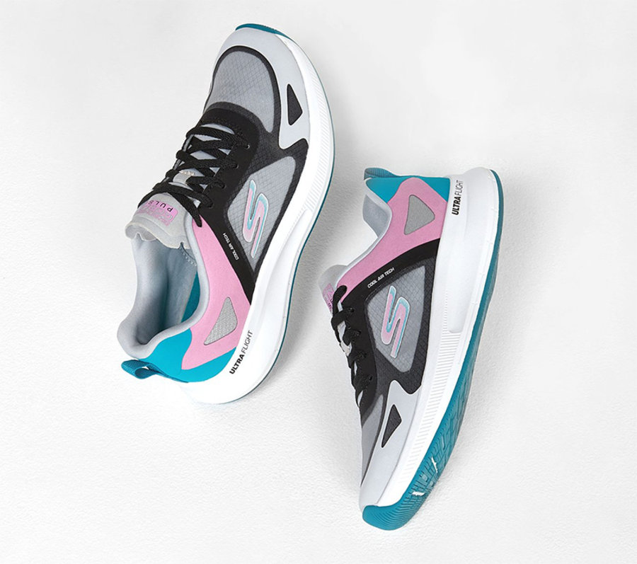 上脚 Skechers 新款缓震跑鞋 Go Run Pulse,搭配淡蓝色外套,甜美又乖巧。