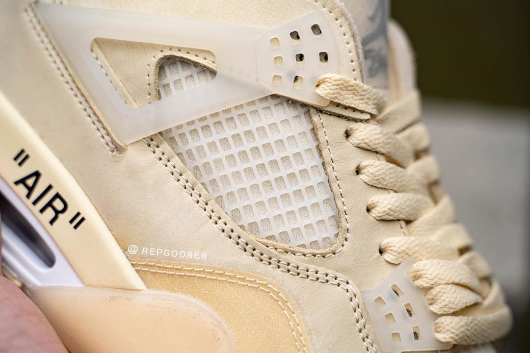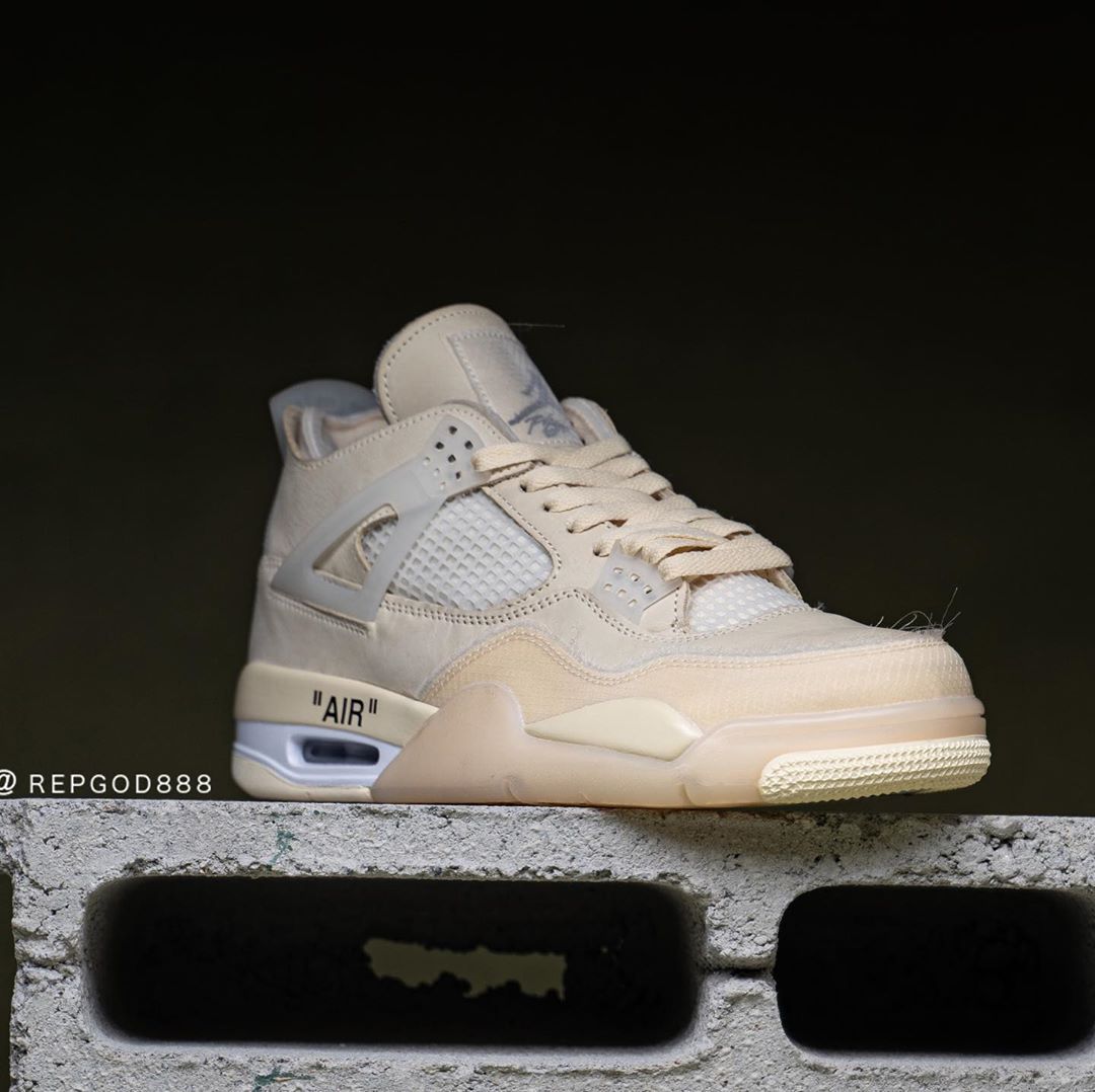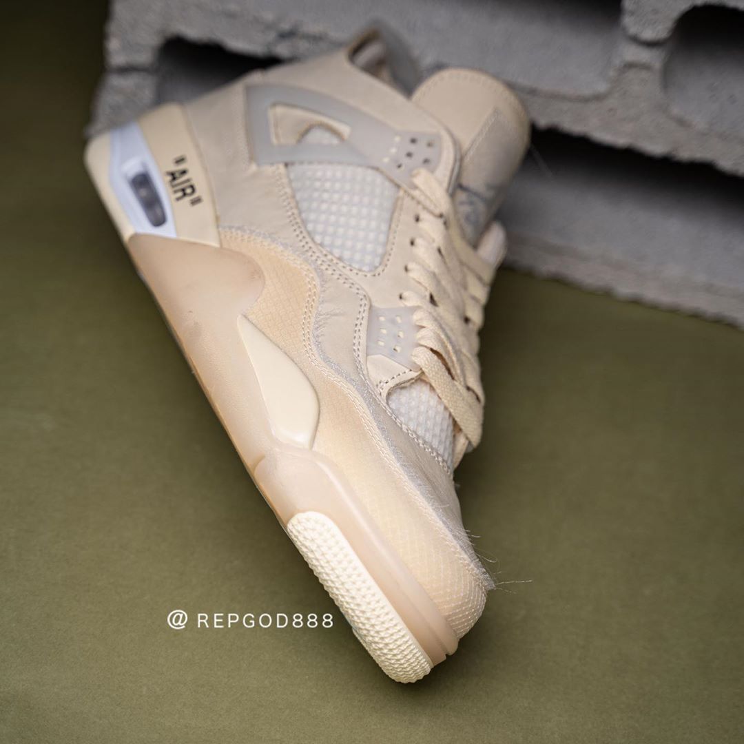 今早 Instagram 球鞋爆料账号 @repgod888 率先带来这双 OFF-WHITE x Air Jordan 4 “Sail” 的实物细节及上脚照。