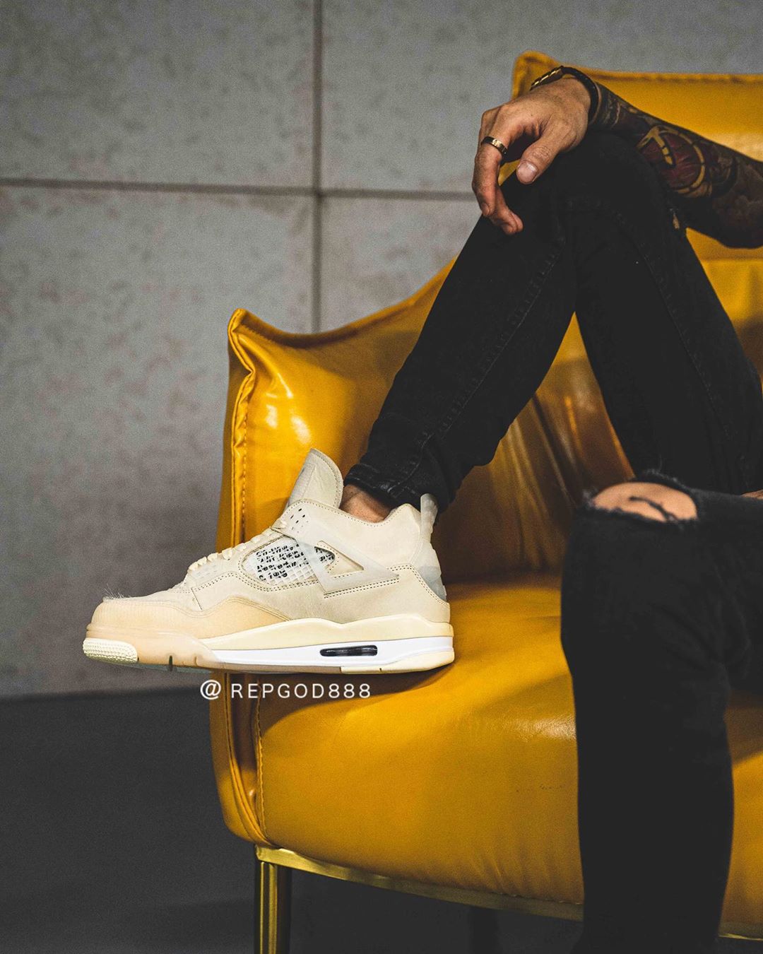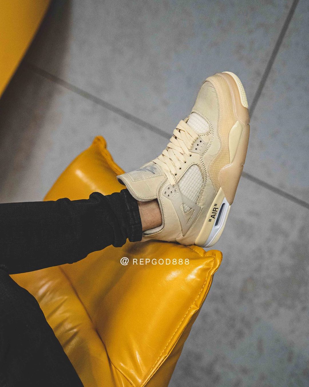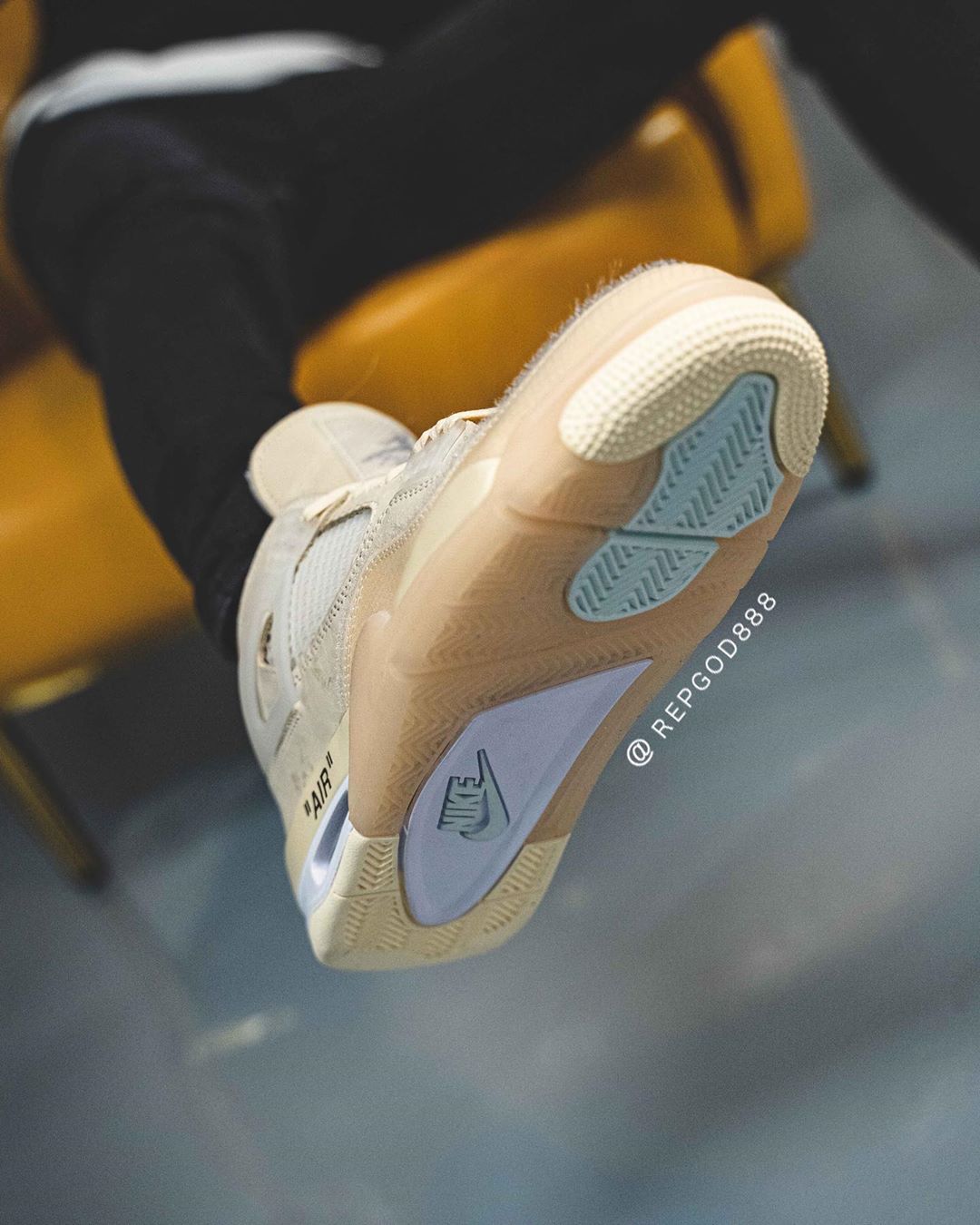 今早 Instagram 球鞋爆料账号 @repgod888 率先带来这双 OFF-WHITE x Air Jordan 4 “Sail” 的实物细节及上脚照。