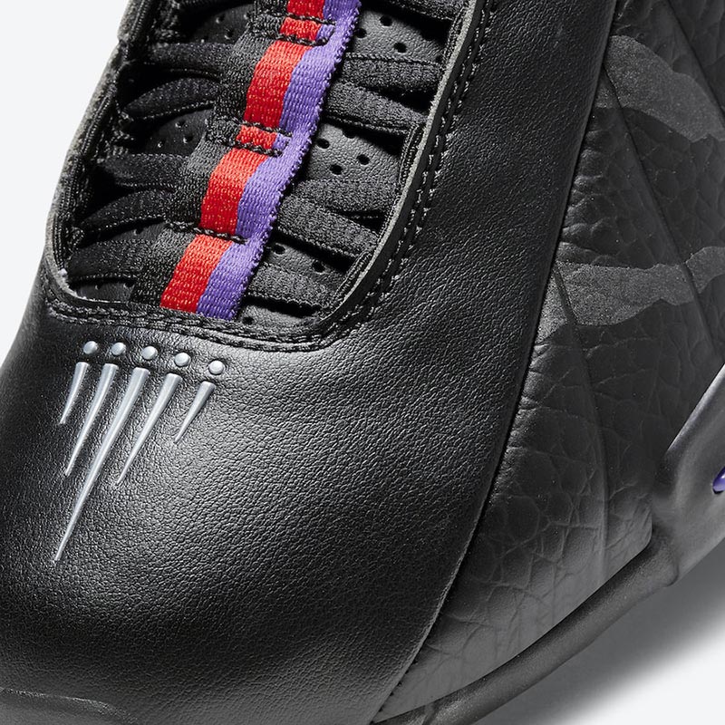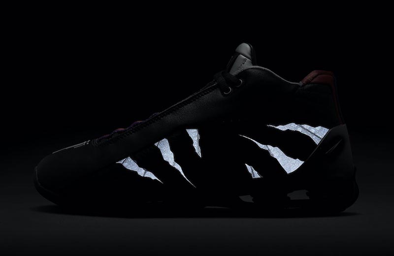 最大亮点还在于鞋身暗藏龙爪撕裂的 3M 反光,加之象征多伦多猛龙的红、紫色点缀细节,纪念意义更为浓郁。