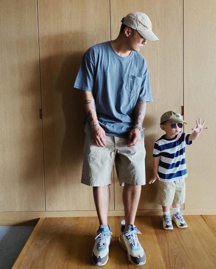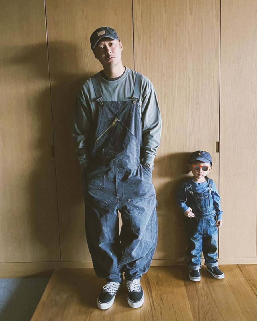 首先便是两双经常上脚的 Vans 鞋款,搭配连体背带牛衣,展现出一贯的工装穿搭风格,同时亲子装穿搭,也是满满的爱意。
