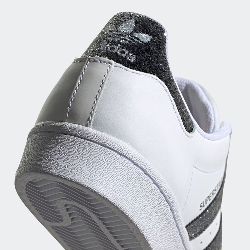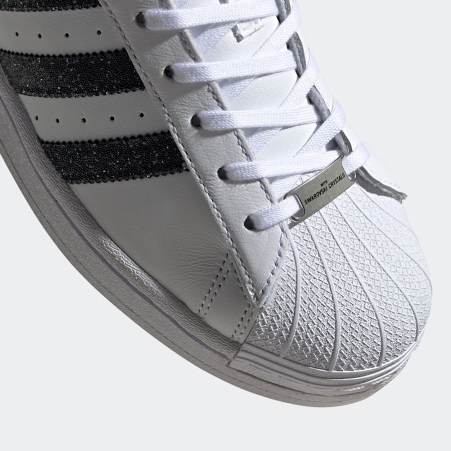 最大的亮点则在于,三道杠 Logo、鞋舌标与后跟等多处细节,均覆盖了施华洛世奇知名的水钻覆盖,在光线下格外亮眼。
