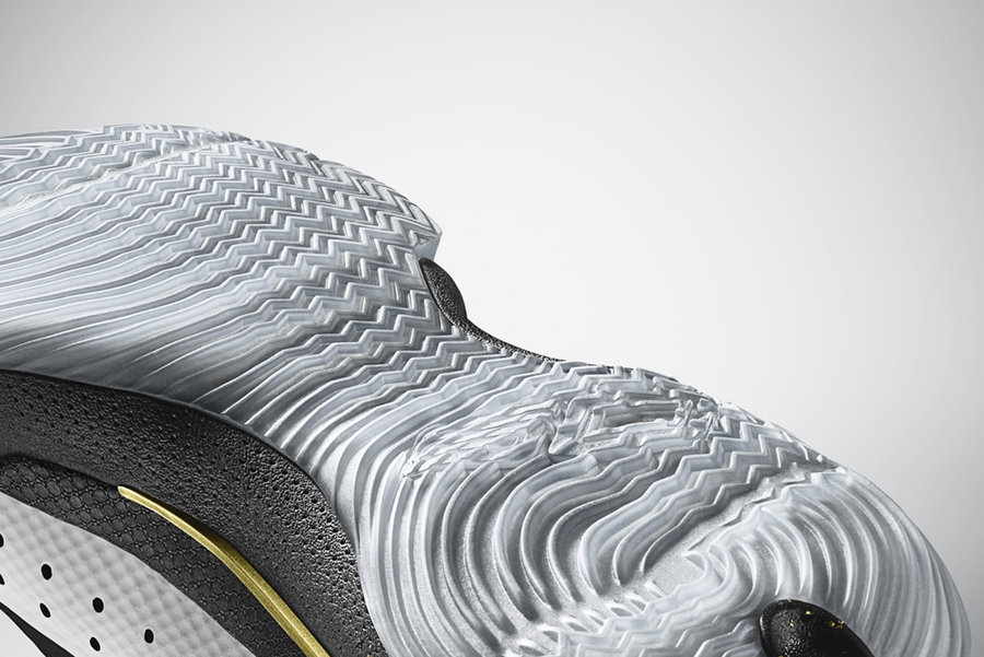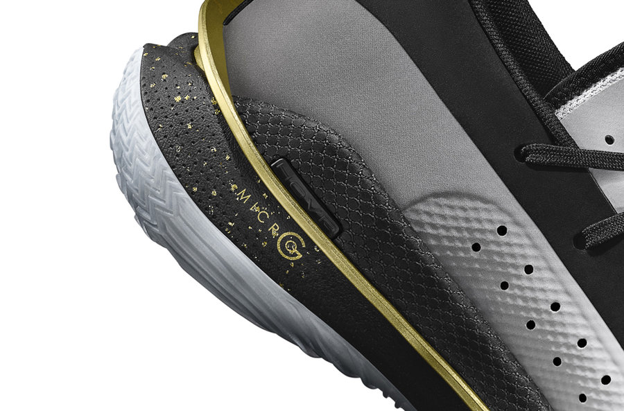 中底 Flexible Plate 科技弹性支撑片及鞋面 SC Logo 以金色点缀,中底也有金色喷溅,增添华丽风格。