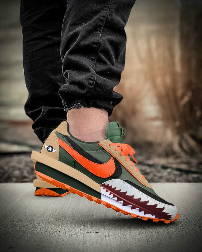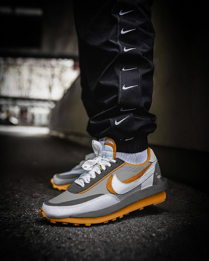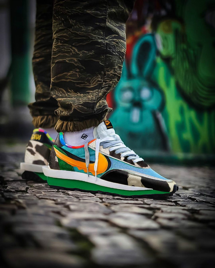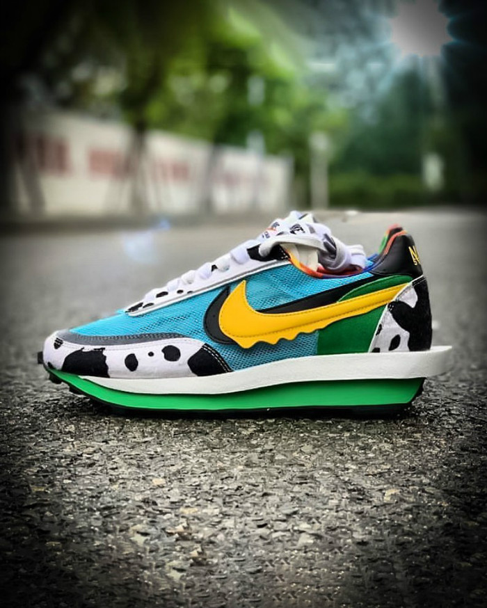 将冰淇淋 Dunk SB 的构色方案无缝嵌套在 sacai x Nike LDV Waffle 的鞋身之上。