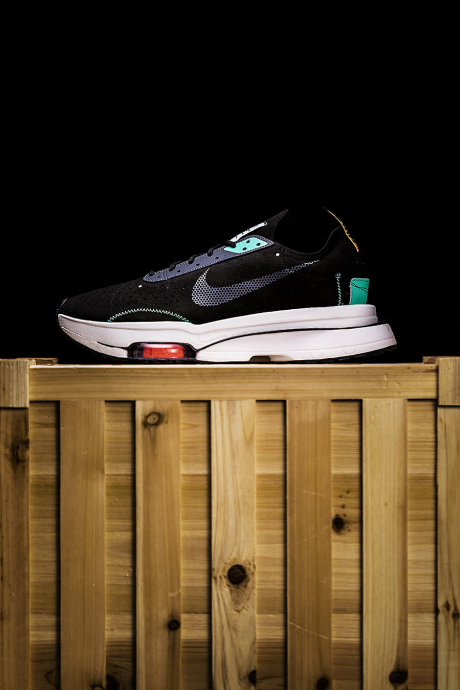前掌两颗 Zoom Air 气垫内外分别采用绿色和红色点缀内置纤维丝,上脚挺醒目。