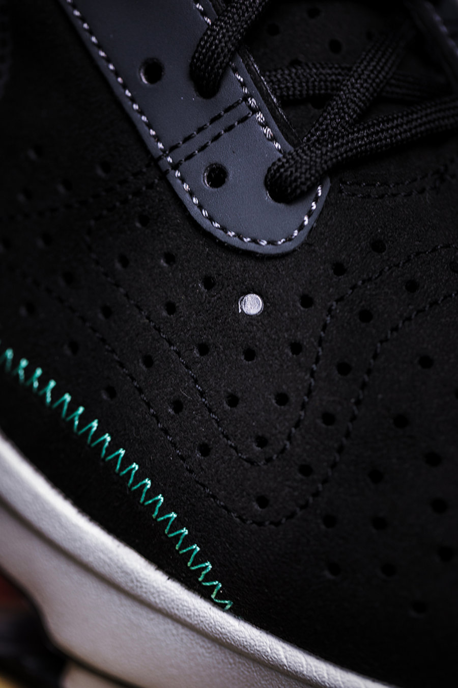 鞋面也采用翻毛皮革配合打孔设计示人,既提升了层次质感,又兼顾到出色的透气表现。