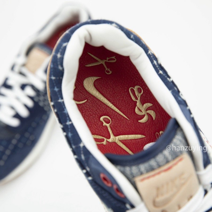 整双鞋采用不同深浅以及花纹的丹宁面料打造,侧身搭配白色 Swoosh Logo,同时亮眼红色车线为整双鞋的细节注入看点。