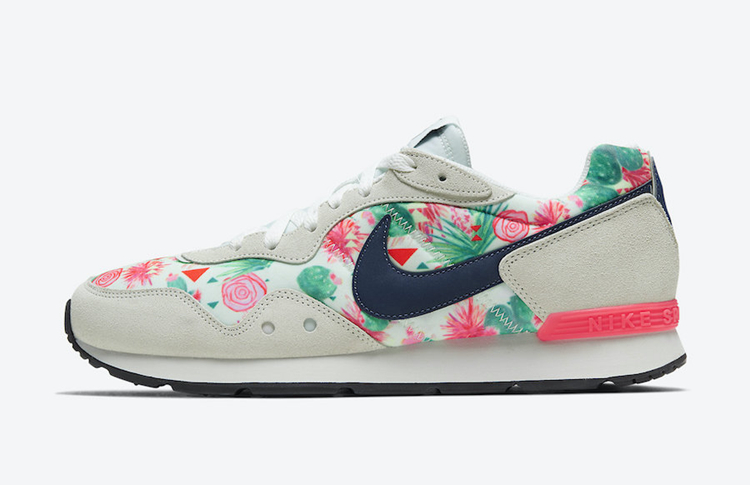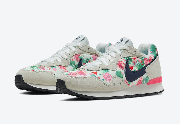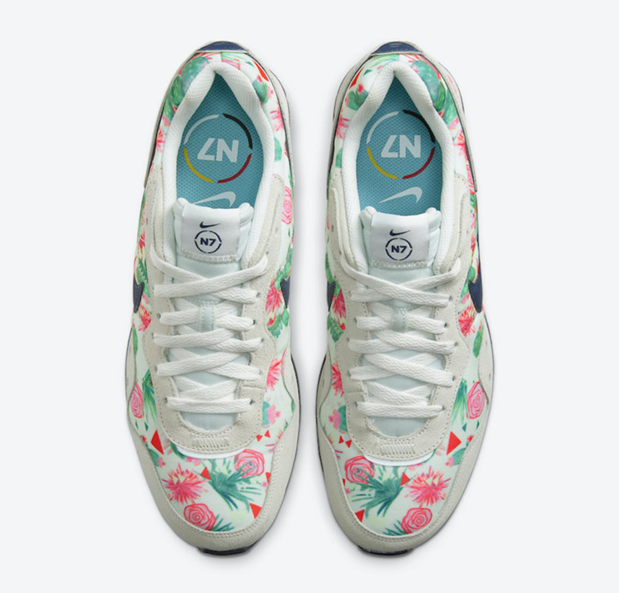 而复古气质十足的 Nike Venture Runner “N7” 采用米白色打造鞋身框架,丰富的花卉图案填充鞋面,侧身搭配海军蓝色 Swoosh Logo,完善整双鞋的设计。