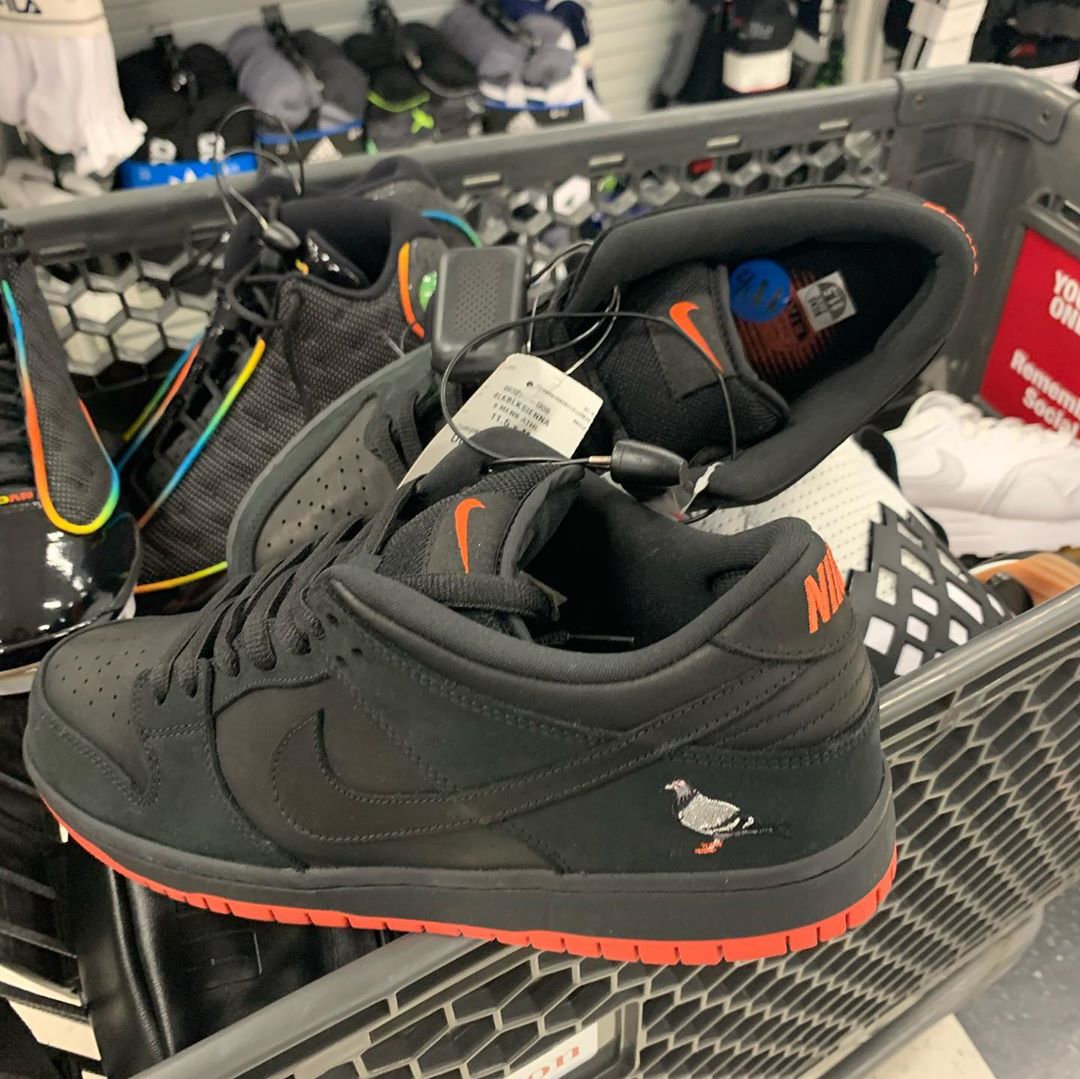 美国伯灵顿奥特莱斯店铺在疫情平息后的重新开张时,球鞋区货架竟然惊现黑鸽子 Jeff Staple x Dunk SB Low。