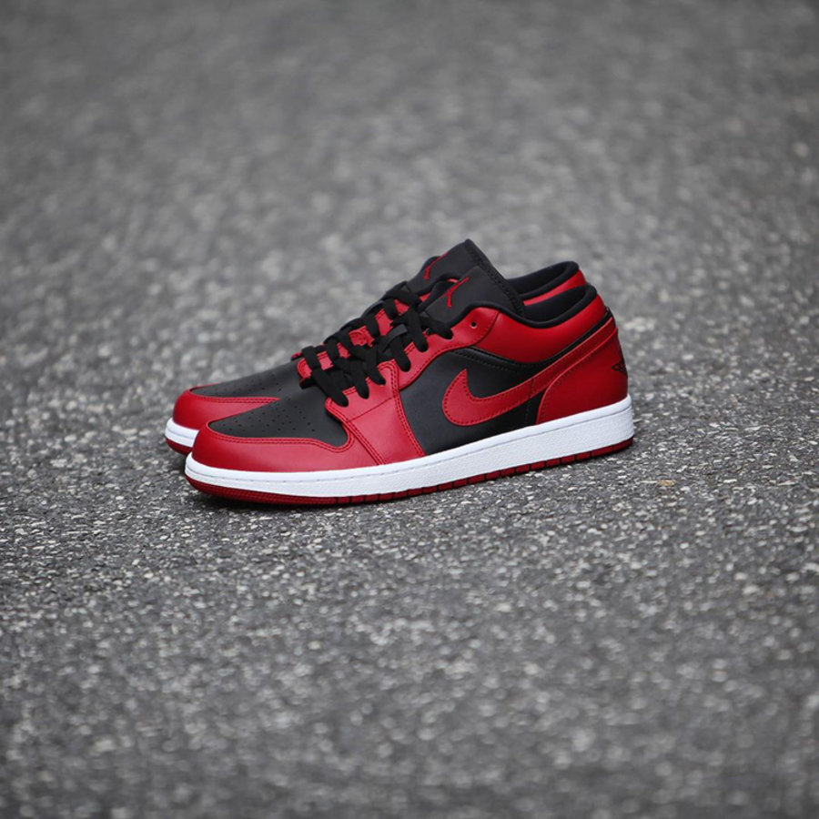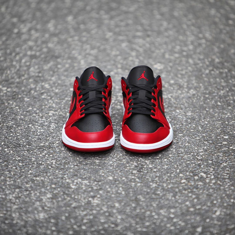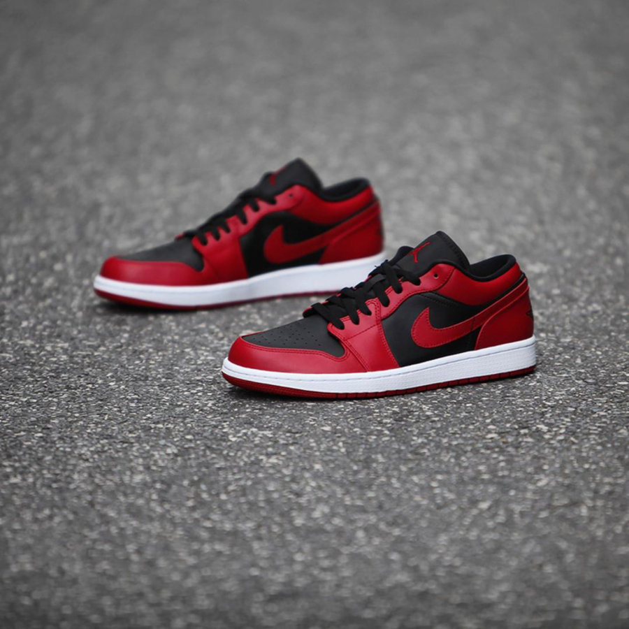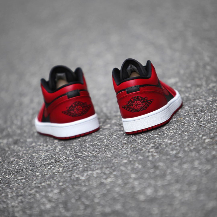 熟悉的黑红 Bred 配色效果,与高帮款配色如出一辙,黑色鞋面与侧身,搭配上红色 Swoosh Logo,经典气质呼之欲出。