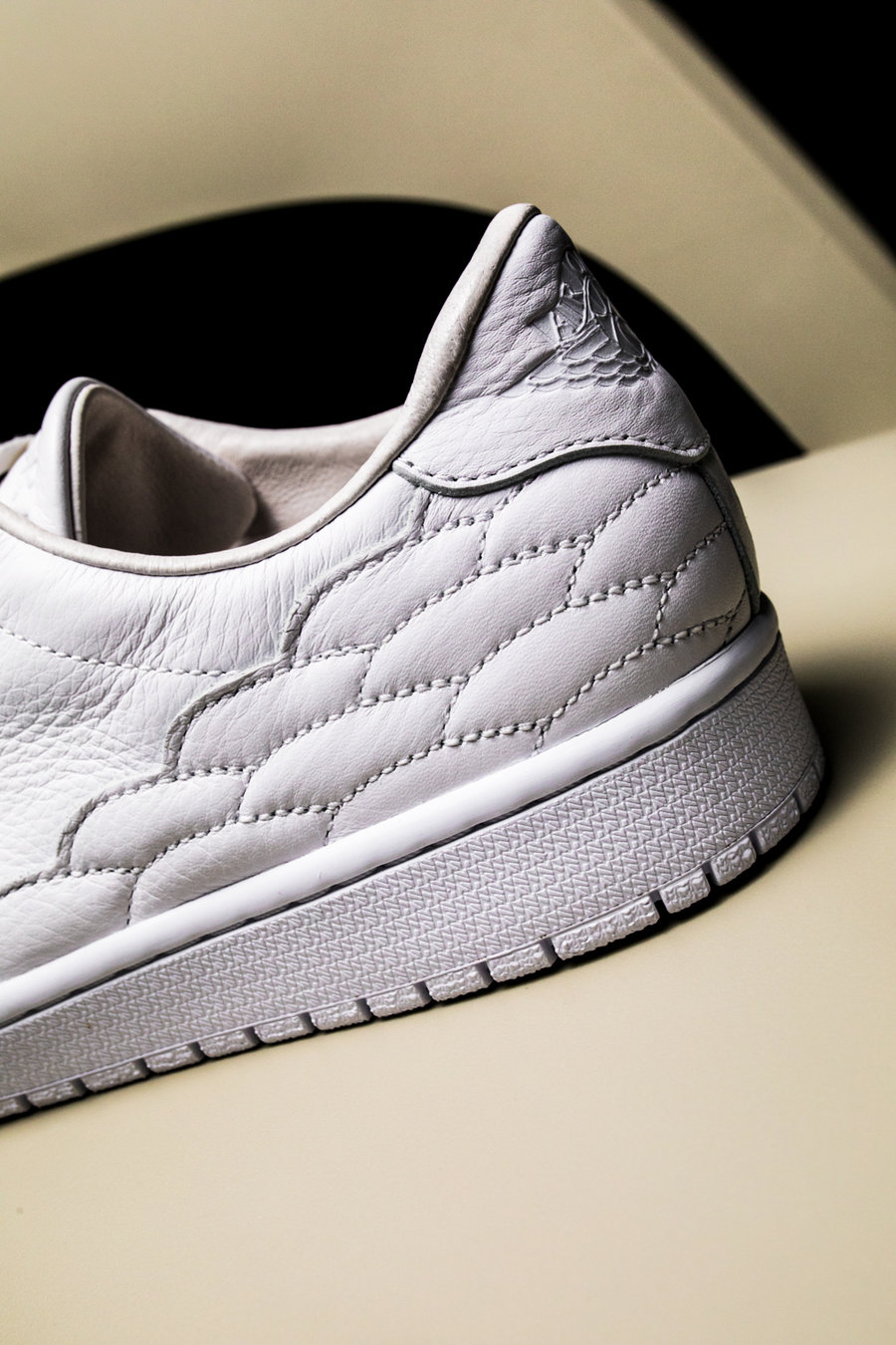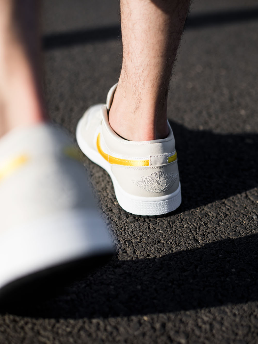 后跟处压印有白色飞翼 Logo,融入了 Air Jordan 1 Low 的经典设计。