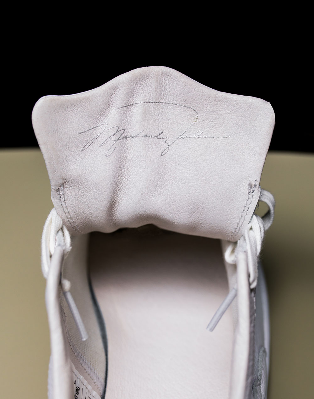设计暗藏玄机,鞋舌内侧还有两个不容易被发现的小细节,左脚鞋舌内侧印有乔丹的指纹,右脚则是乔丹的手写体签名,细节彰显不同。