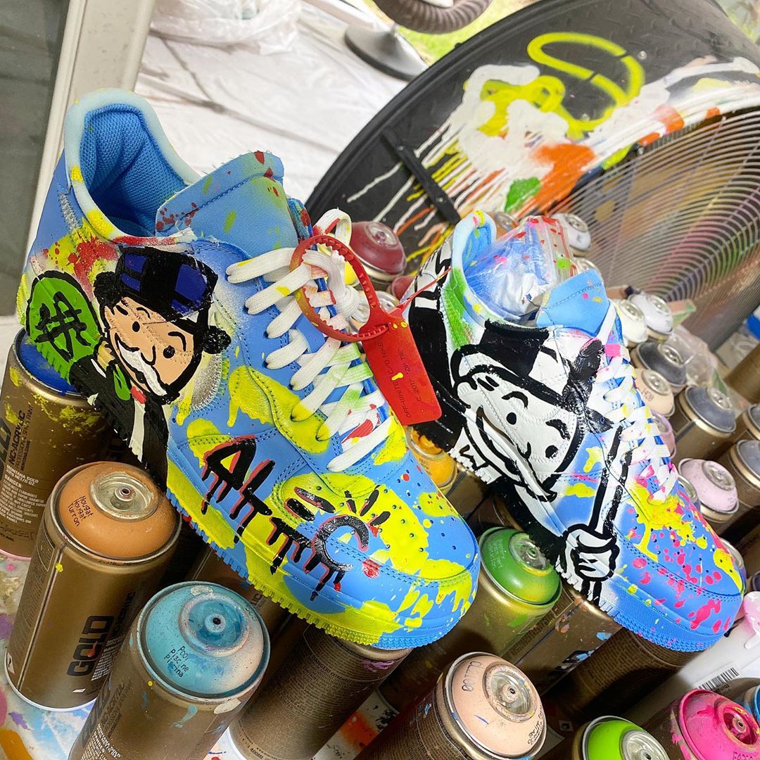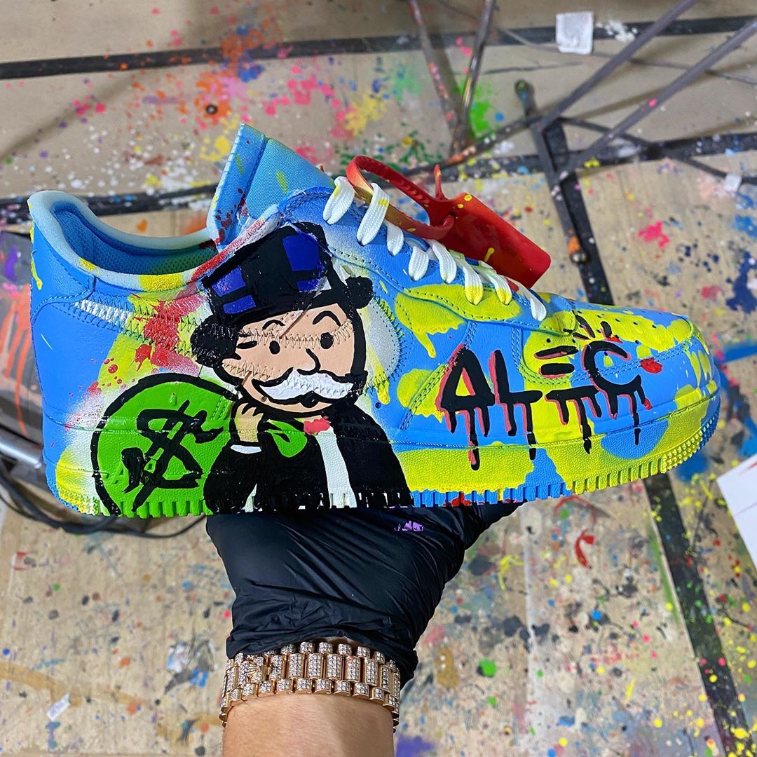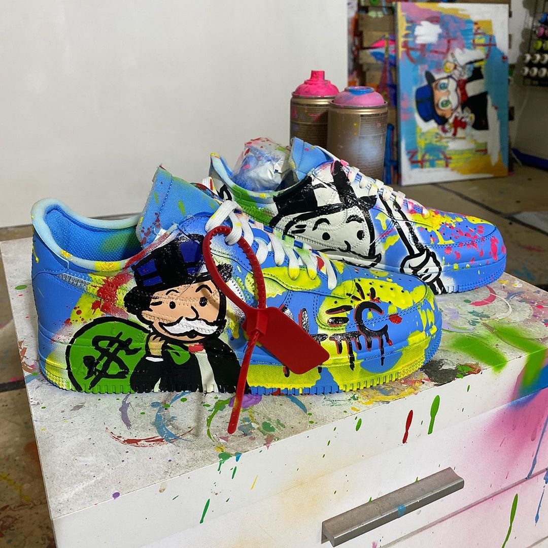 近日,海外潮流艺术家 Alec Monopoly 手绘的一双鞋,成功引起了球鞋圈不少大佬的关注。