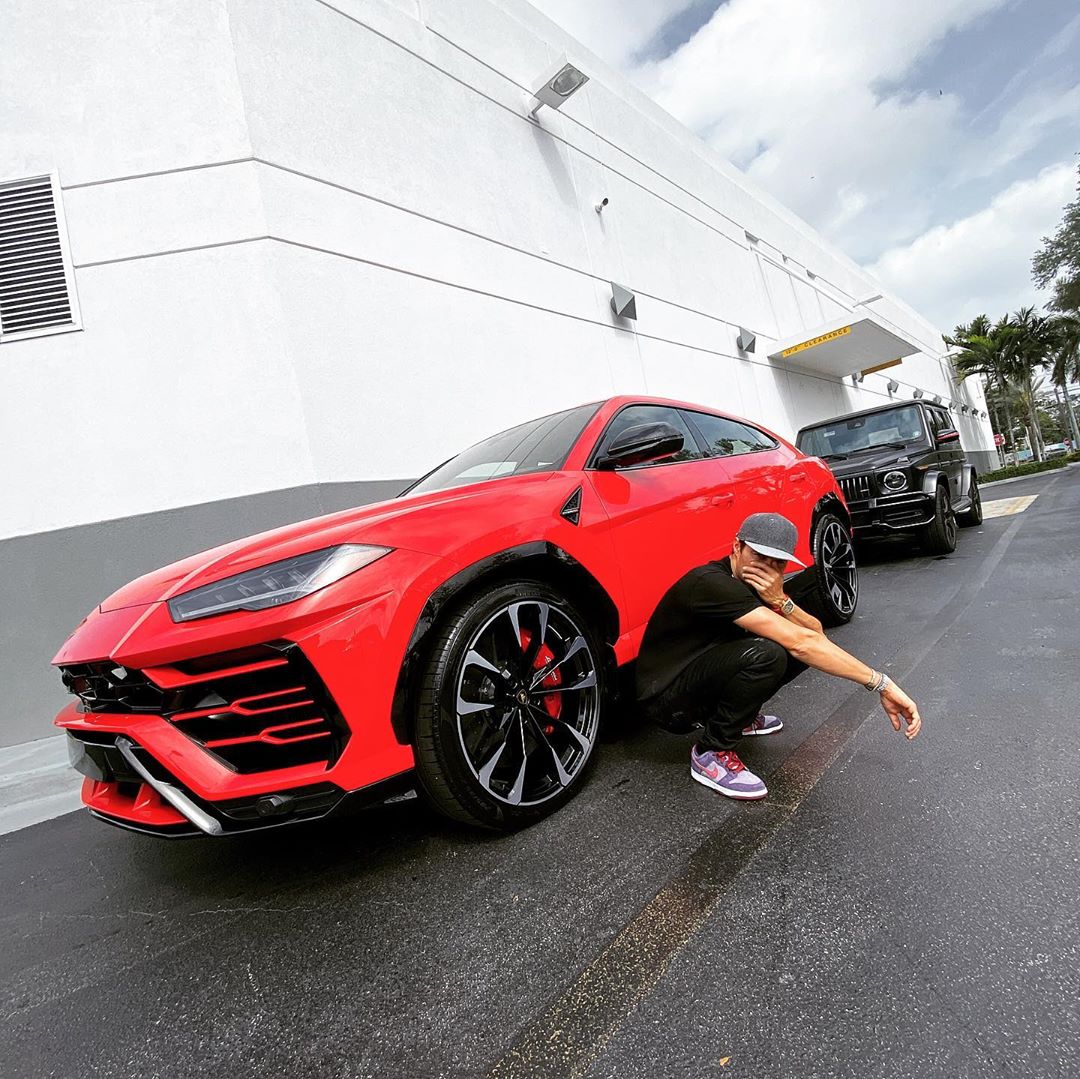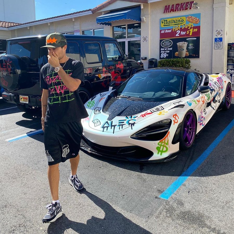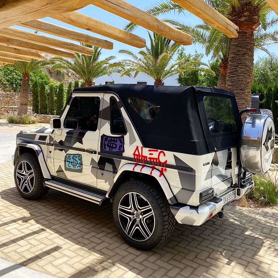 除了爱玩鞋外,他还有不少狠车,都是以他的涂鸦定制装饰的。