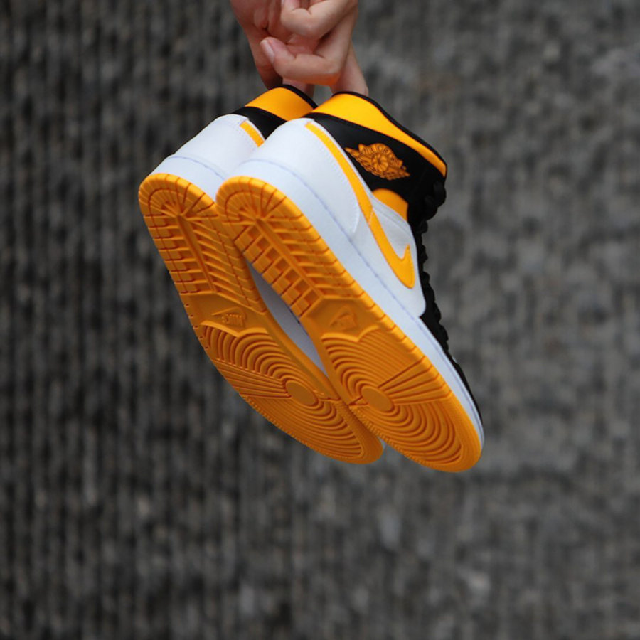 最后,白色中底搭配黄色外底,完善整双鞋的设计。