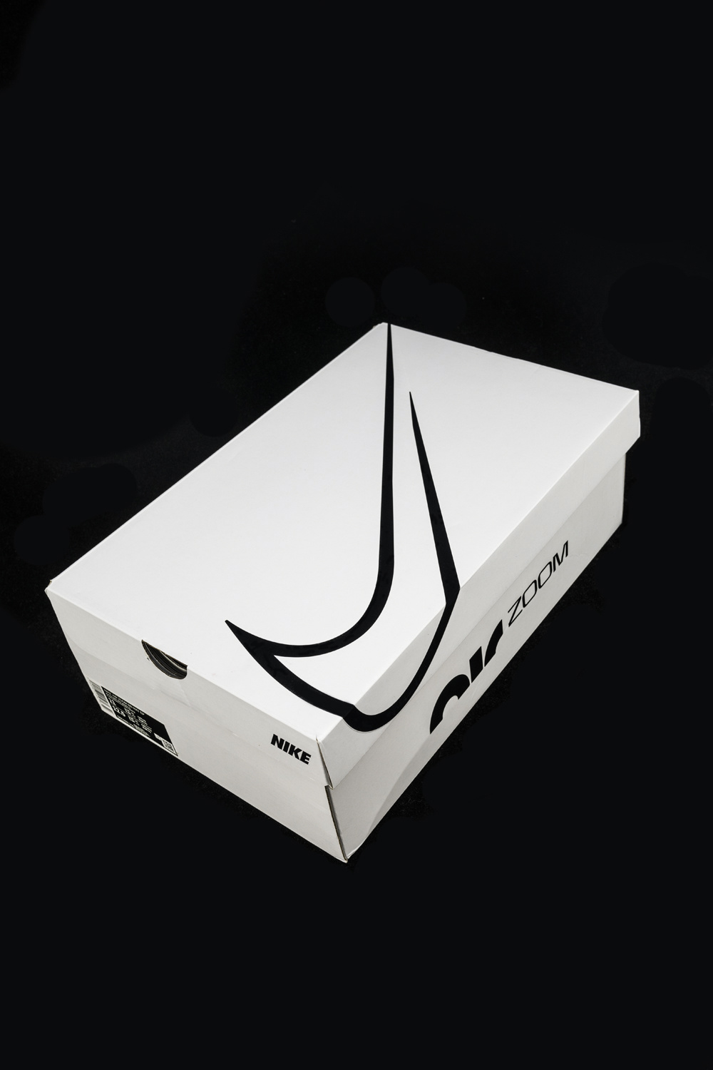 先看鞋盒,纯白底色搭配不完整的勾线 Swoosh,极具新意造型暗示了这双鞋革新之作的身份。