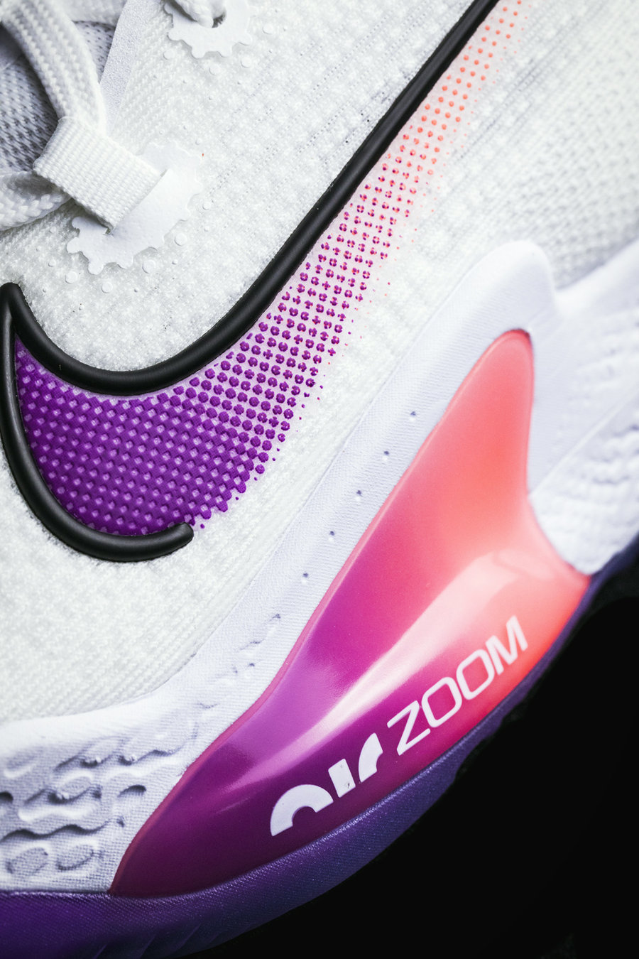 之所以并未使用在跑鞋上大获好评的 ZoomX,是因为这款科技的形变过于明显,并不能带来篮球鞋必须的稳定性。