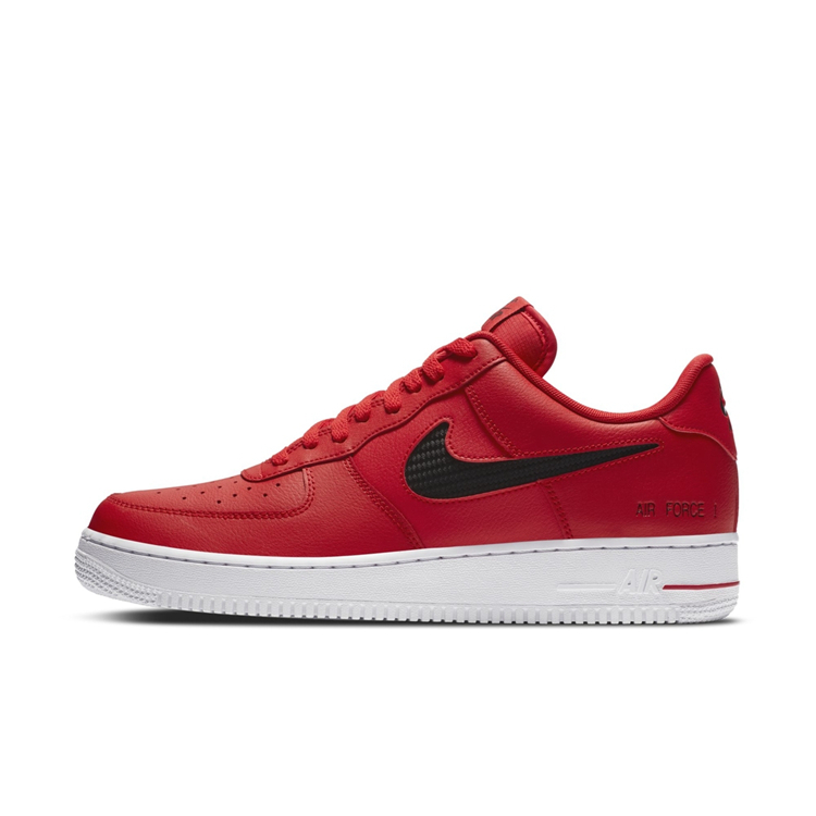 侧面饰有黑色 Swoosh Logo,呈现出经典黑红配色效果。值得一提的是,镂空设计的 Swoosh Logo 内里采用编织材质打造,与皮革鞋面对比鲜明。